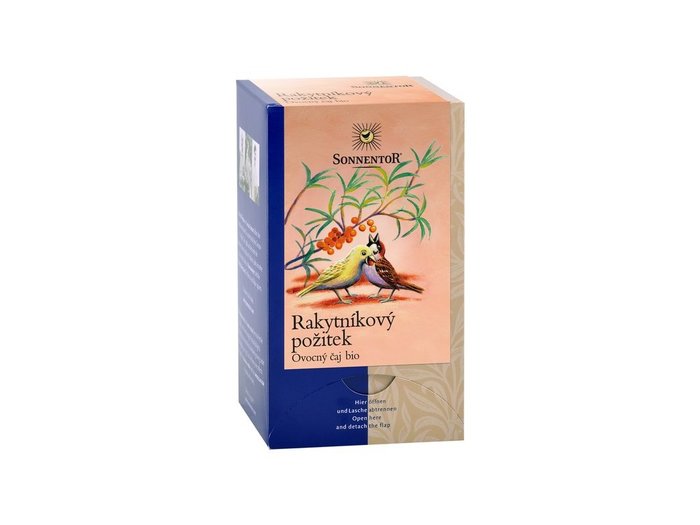 Blahodárně působící jemná ovocná směs rakytníku se šípkem a květem bezu černého. Užijte si aromatického rakytníku ve studených zimních měsících, nebo si jej vychutnejte v létě jako ledově vychlazený nápoj. Rakytníkový požitek skvěle chutná k čerstvému sýru s medem, k jarním salátům s čerstvými květy, ke sladší zelenině, jako je mrkev a červená řepa, nebo k dezertům.