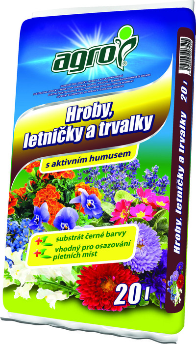 Substrát na hroby, letničky a trvalky slouží k výsadbě letniček, dvouletek i trvalek (macešky, begonie, afrikány, ...). Má přirozenou, decentní černou barvu - proto je vhodný i na osázení pietních míst.